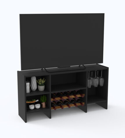 Rack TV N°330 (10 Botellas + 9 Copas) – Negro